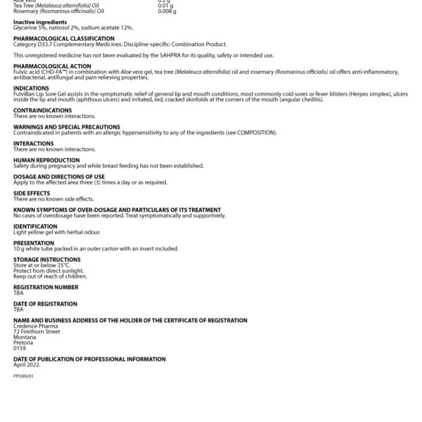 FulviAct FulviBan Lip, Mouth & Nasal Sore Gel